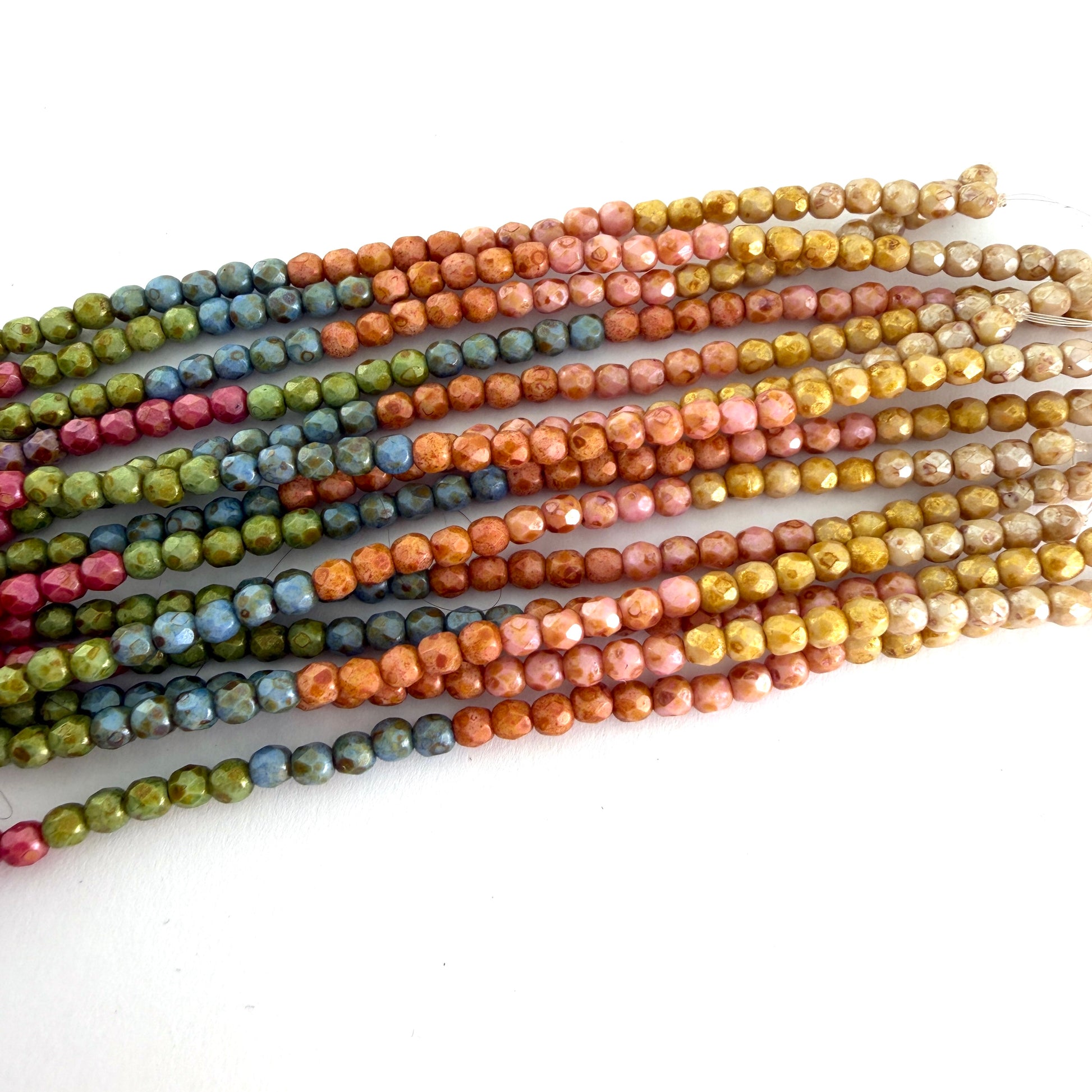 3mm Czech Fire Polish - 9-color Picasso Rainbow Luster – 45 pcs. Five pieces of each color.